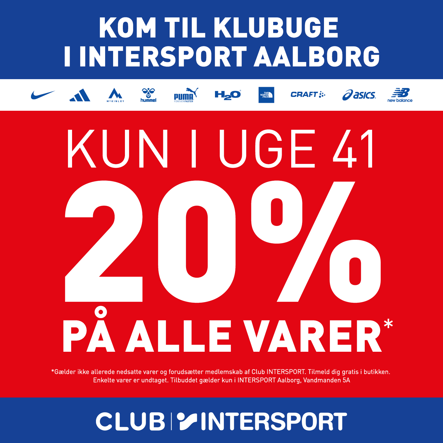 Hvis denne frem når du besøger Intersport i Aalborg og optjen 20% i den kommende uge.