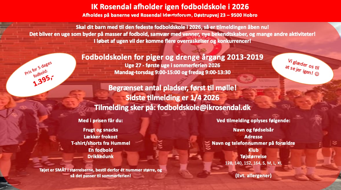 NYHED - Så kom den her endelig tilmeldingen til årets fodboldskole sommeren 2026 i uge 27 :-)